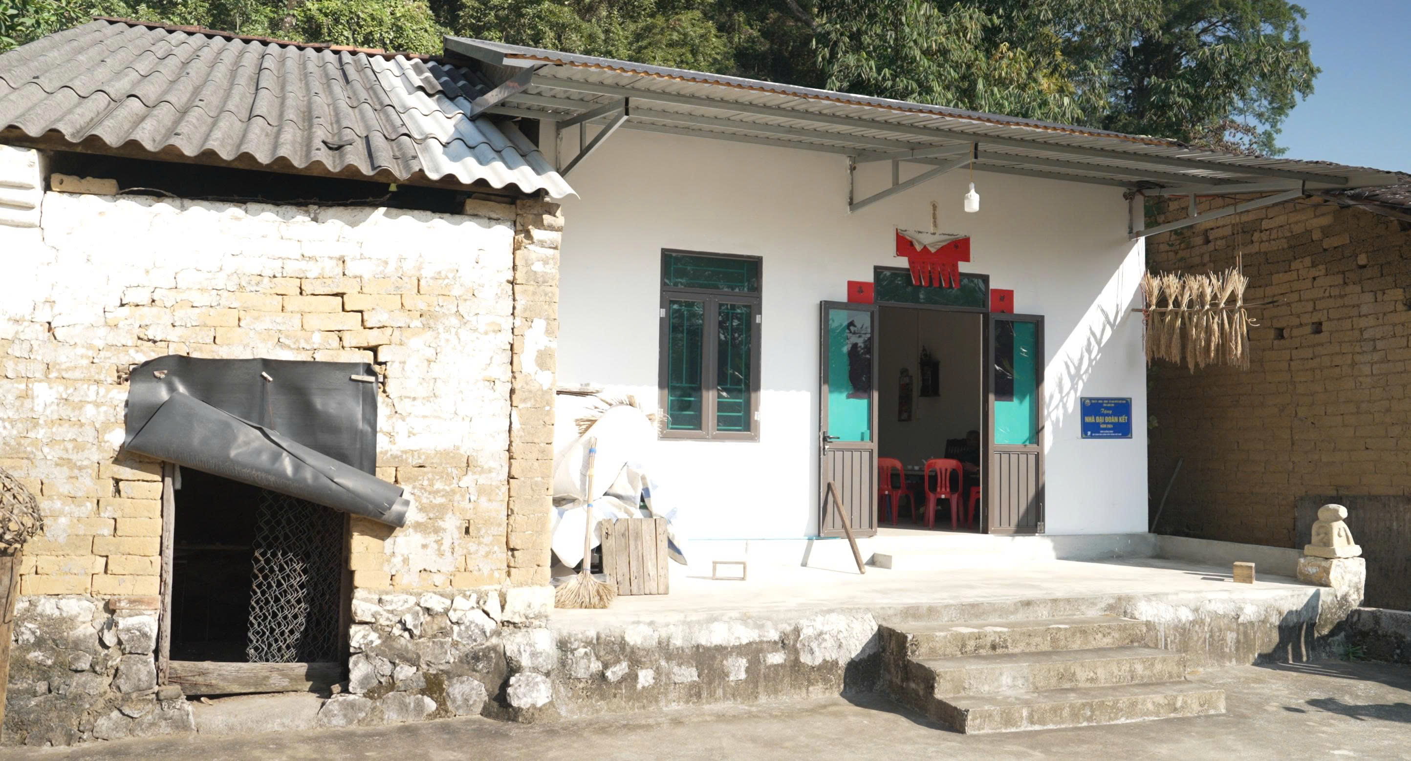 Ngôi nhà mới của một hộ nghèo tại xã Đồng Đăng sau khi được hỗ trợ xây dựng, bên cạnh căn nhà tạm đã xuống cấp trước đây.
