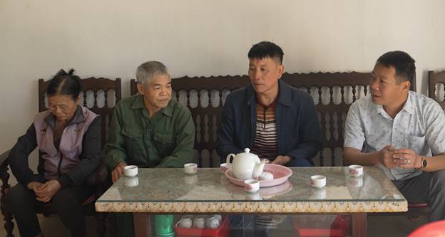 Sự quan tâm của chính quyền xã đến thăm, động viên gia đình ông Hoàng Xuân Nghiêm sau khi hoàn thành căn nhà mới.