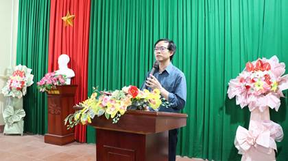 Đồng chí Trịnh Tiến Duy, Tỉnh uỷ viên, Bí thư Đảng uỷ, Chủ tịch HĐND xã phát biểu tại buổi họp
