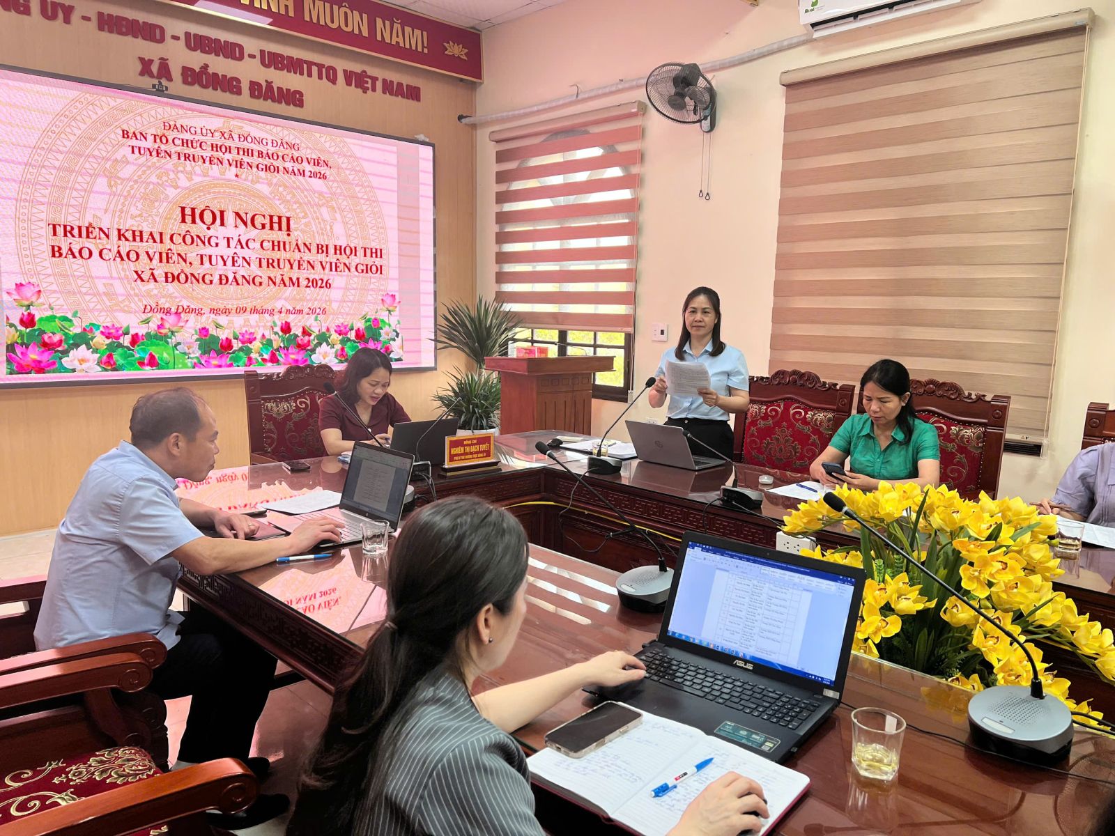 Chiều ngày 09/4/2026, Ban Tổ chức Hội thi Báo cáo viên, Tuyên truyền viên giỏi xã Đồng Đăng năm 2026 đã họp bàn đánh giá tiến độ, công tác chuẩn bị Hội thi.