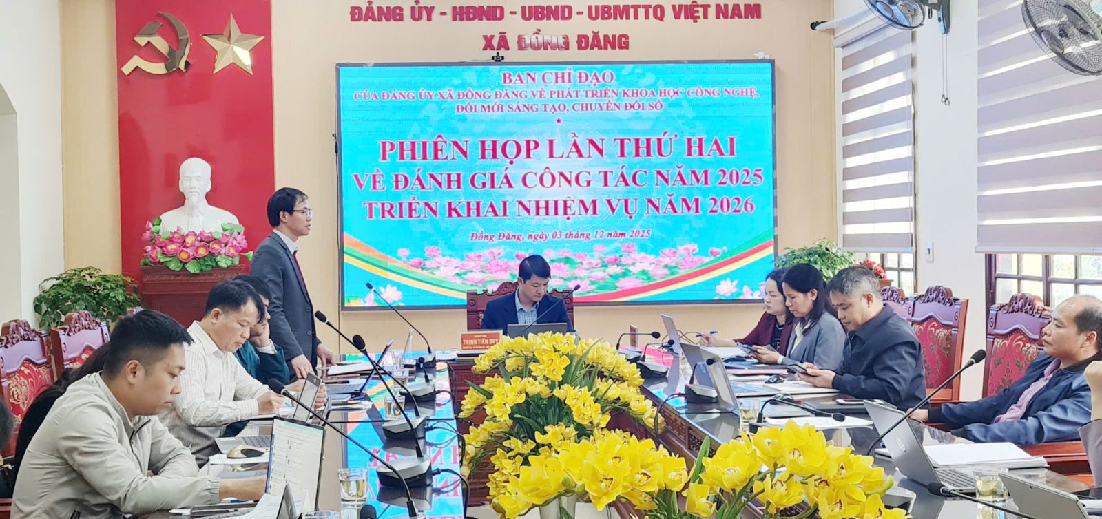 Ngày 03/12/2025, Ban Chỉ đạo (BCĐ) phát triển khoa học công nghệ, đổi mới sáng tạo và chuyển đổi số xã Đồng Đăng tổ chức phiên họp lần thứ hai nhằm đánh giá kết quả thực hiện nhiệm vụ năm 2025 và triển khai phương hướng, nhiệm vụ năm 2026. Phiên họp được tổ chức tại trụ sở UBND xã.