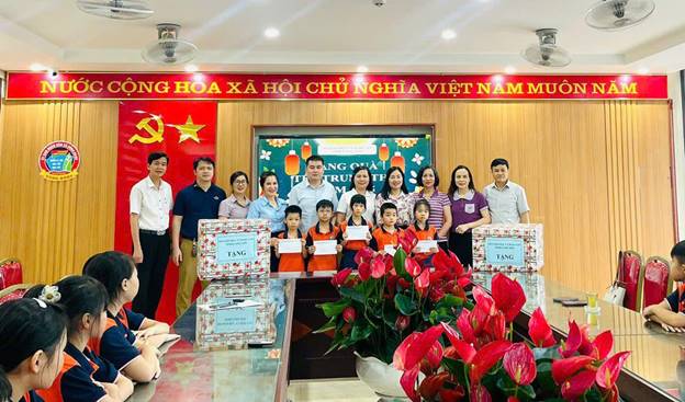 Đại diện nhà trường và các đơn vị đồng hành trao quà, động viên học sinh có hoàn cảnh khó khăn tại Trường Tiểu học Đồng Đăng