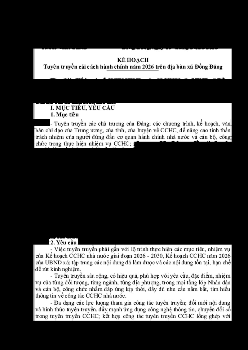 | Tiêu đề văn bản | Kế hoạch tuyên truyền Cải cách hành chính năm 2026 xã Đồng Đăng | ||