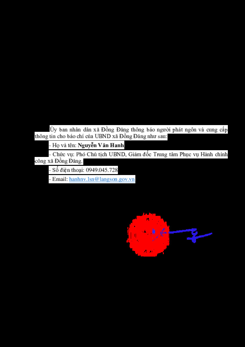 | Tiêu đề văn bản | Thông báo Người phát ngôn và cung cấp thông tin cho báo chí của Ủy ban nhân dân xã Đồng Đăng | ||